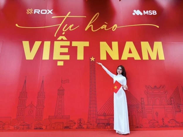 Bức tường với ngôi sao vàng năm cánh  dòng chữ “Tự hào Việt Nam” dưới sảnh tầng 1 ROX Tower trở thành phông nền cho hàng trăm tấm ảnh mỗi ngày.Chị em văn phòng xúng xính áo dàibiến khoảnh khắc tự hào thành kỷ niệm đáng nhớ.